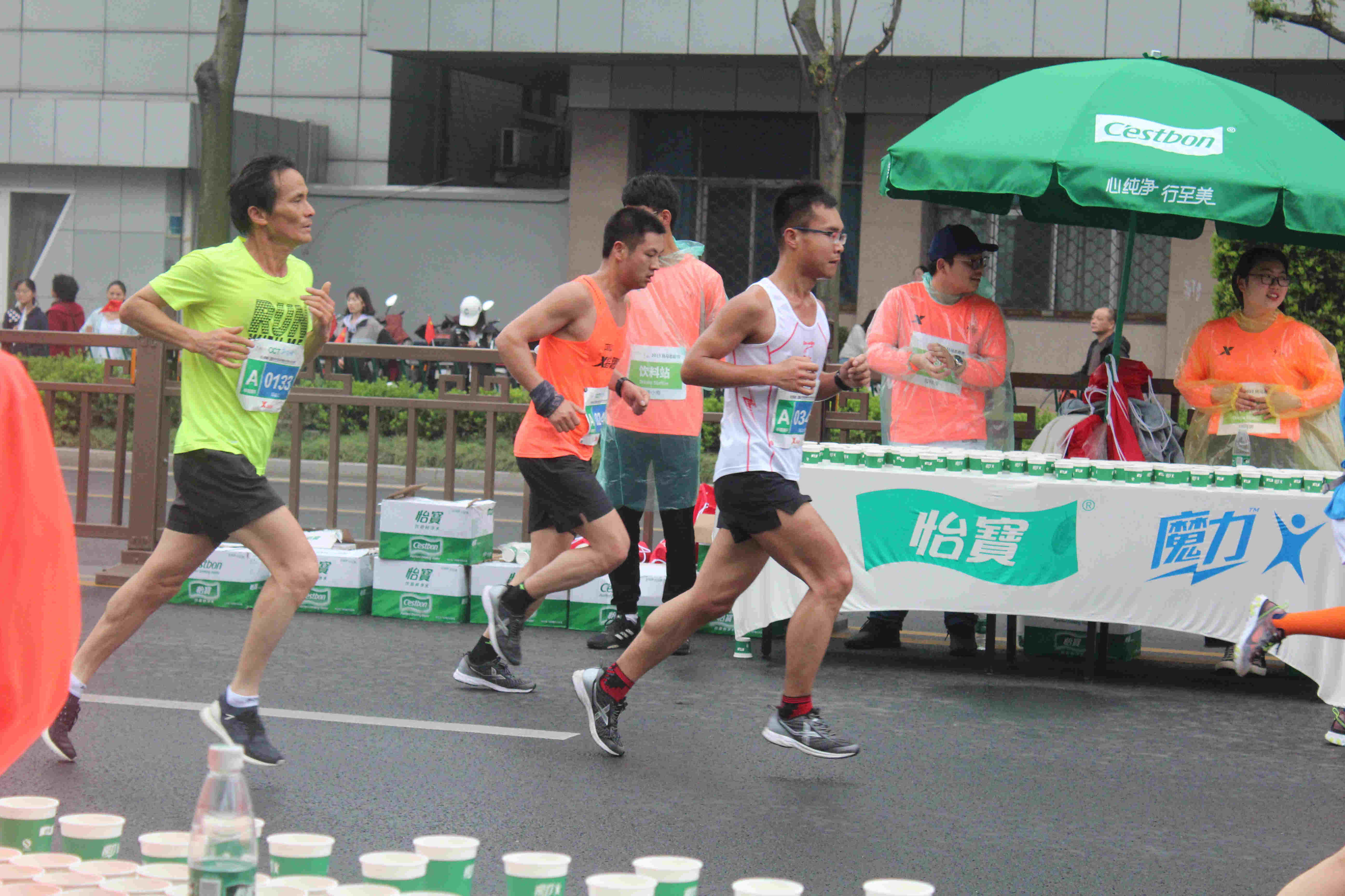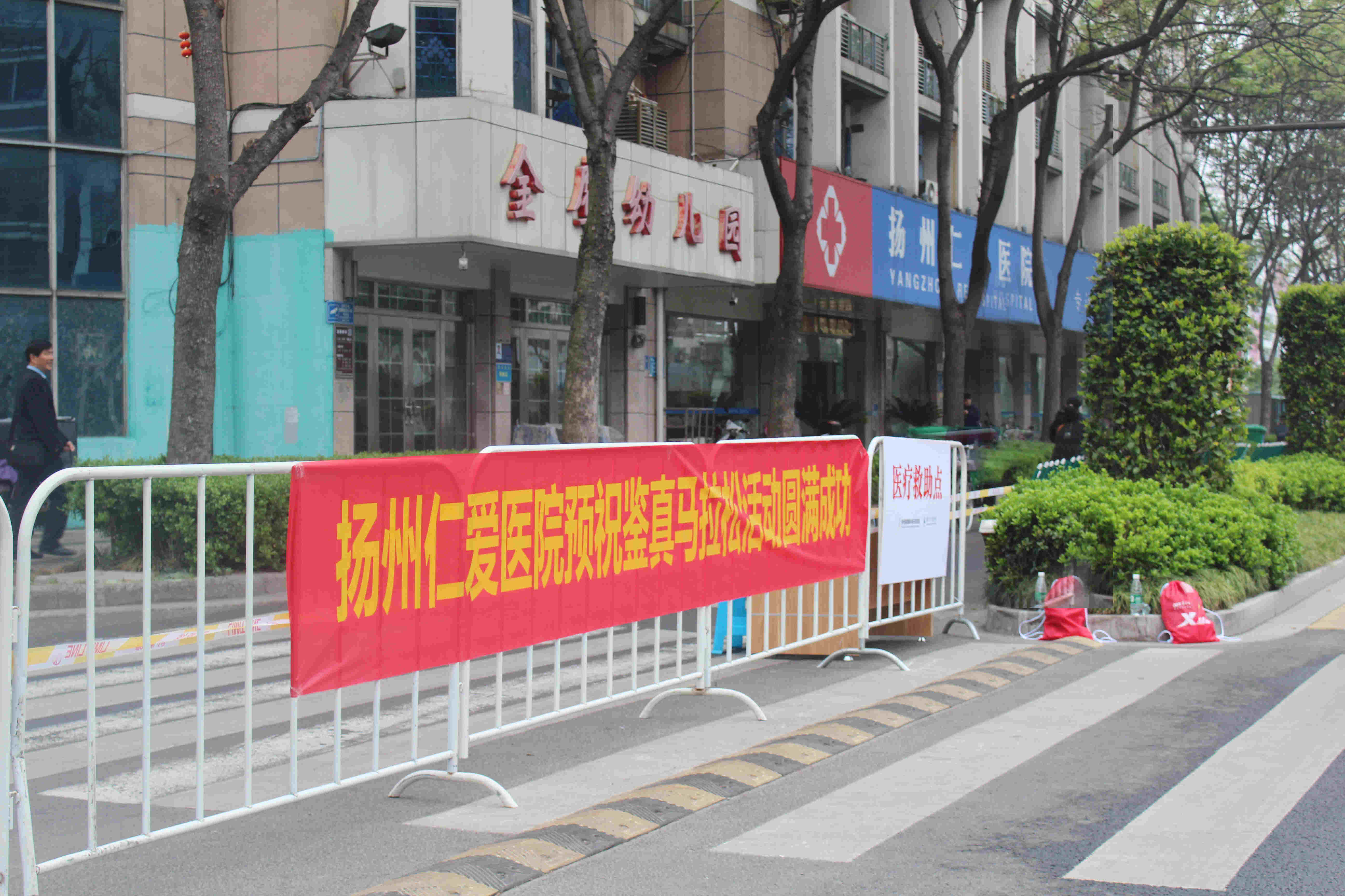 而在赛道中途的一处,扬州仁爱医院的医疗志愿者们,以‘整装待发’以在赛道中途设立医疗救助点,为3.5万民跑者‘保驾护航’。